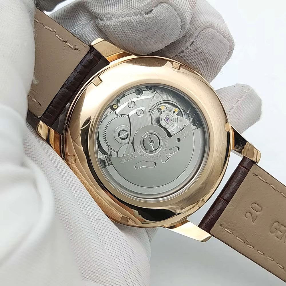 This 40mm timepiece captures that timeless round-dial charm that never goes out of style—whether you're dressing up or keeping it casual. Powered by a dependable Japan NH35 automatic movement, it keeps accurate time without needing a battery. The sapphire crystal face laughs in the face of scratches and bumps, while the supple leather strap wraps around your wrist like it was made just for you. Splash some water on it? No problem—5Bar water resistance means everyday adventures and accidental sink dunks won't slow it down. Pure vintage vibes, modern reliability.