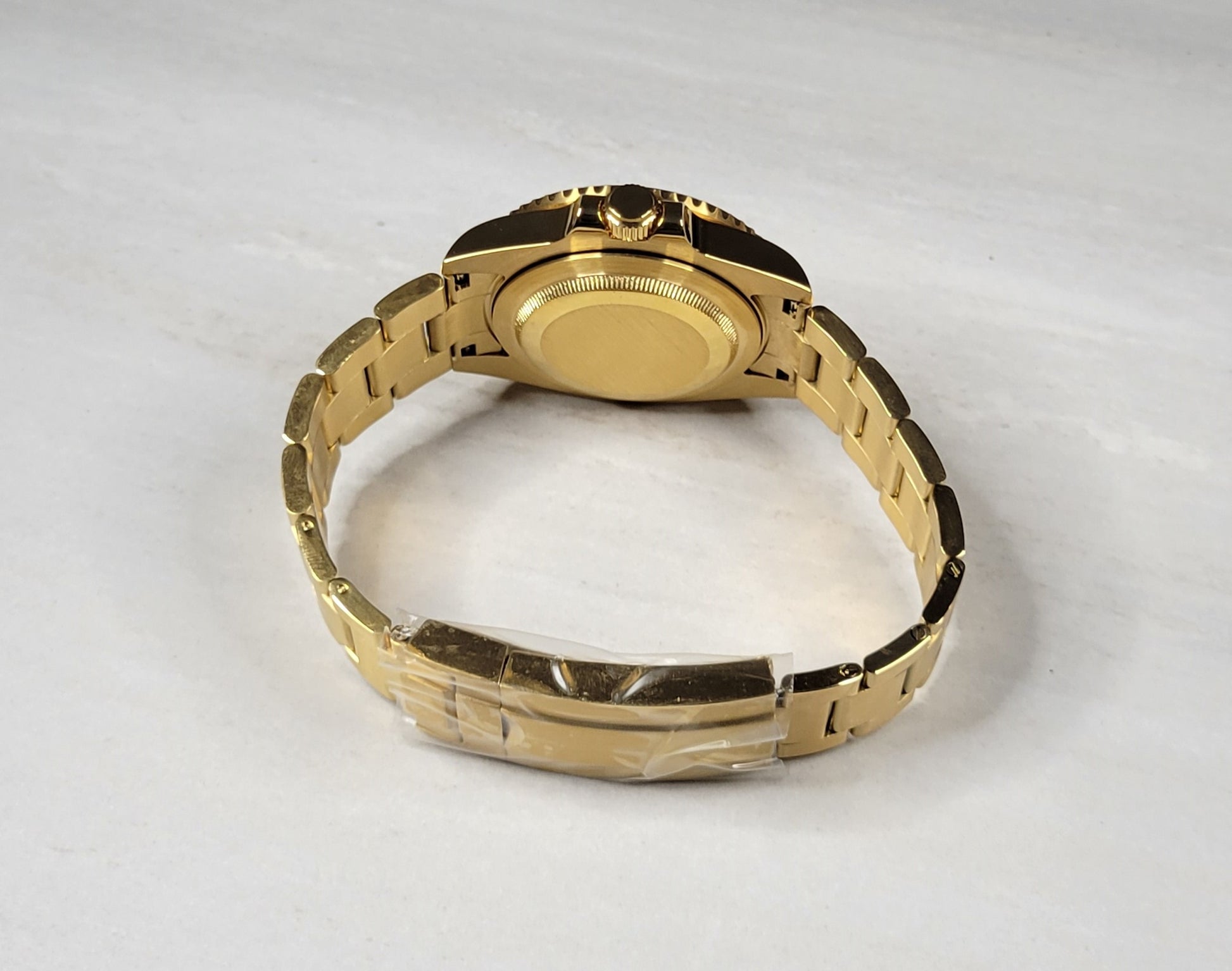 This mod watch is perfect for the stylish and sporty man. With a gold case and matching bracelet, this timepiece is both classic and modern. The ceramic bezel and sapphire crystal give it a durable and sophisticated look, while the luminous hands and indexes make it easy to read in any lighting. This Submariner Homage features a screw down crown, shock resistance, and a date indicator. The automatic movement with 24 jewels ensures accurate timekeeping. The unidirectional rotating bezel and 12-hour dial add to its functionality. This customized watch is a must-have for any watch collector or enthusiast.